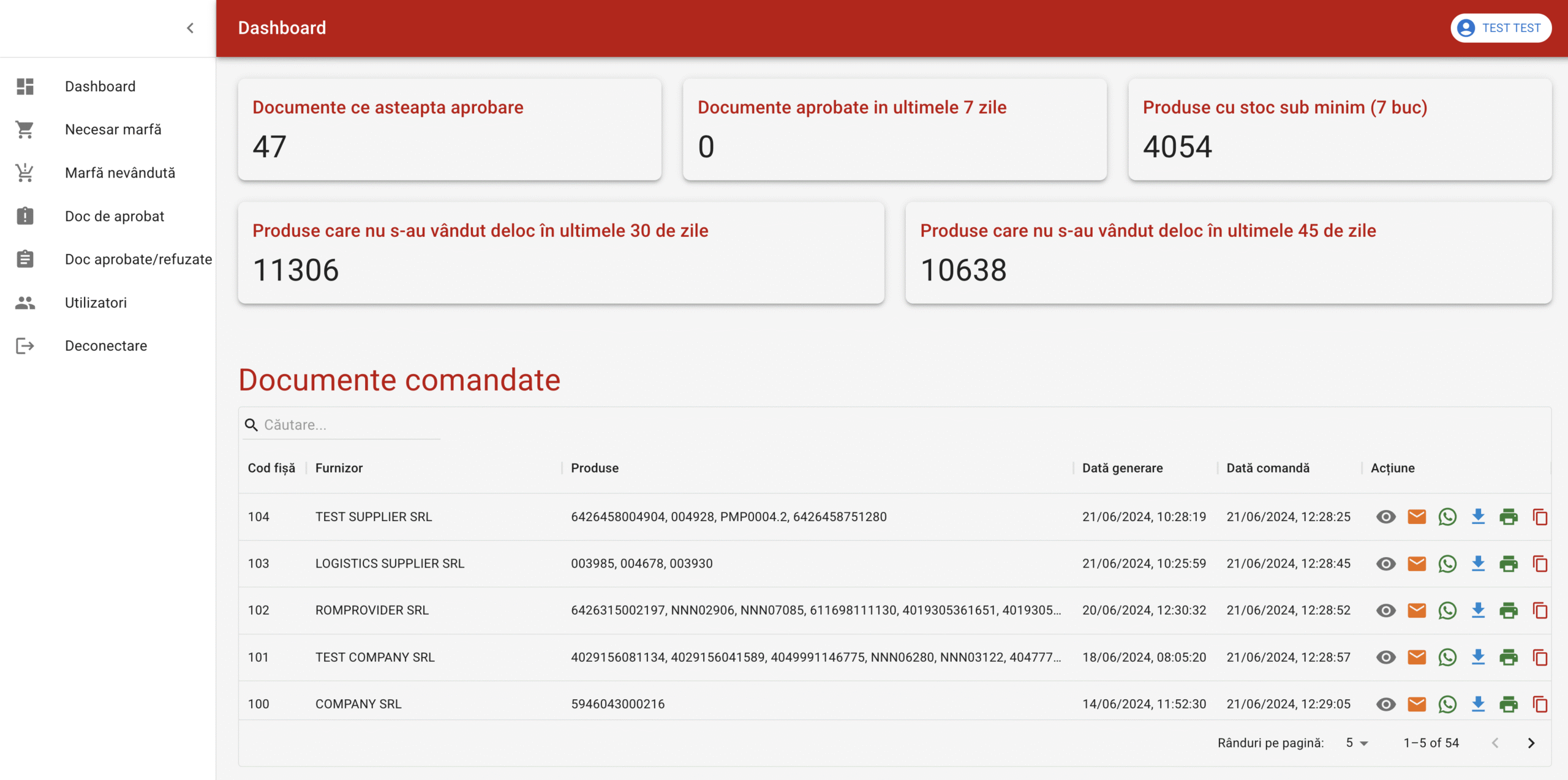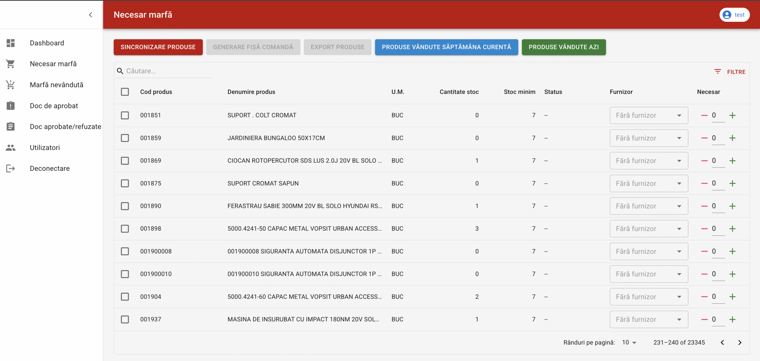Visualization of product stock requirements and automatic generation of purchase orders to the corresponding suppliers